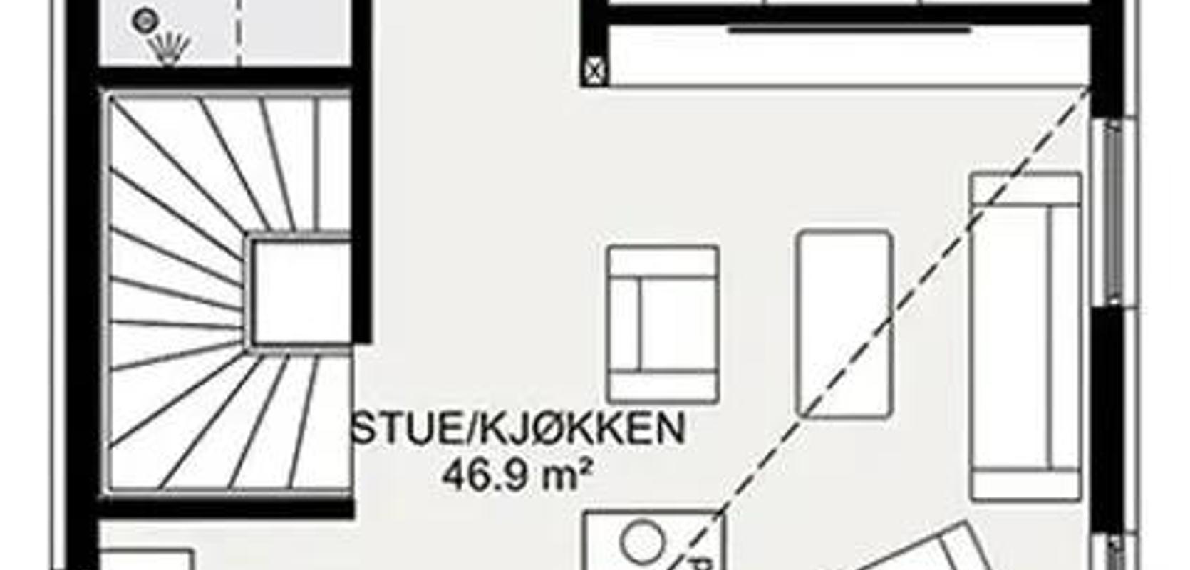 Huset er i stor grad mye lik den opprinnelige modellen Alta for skrå tomt.