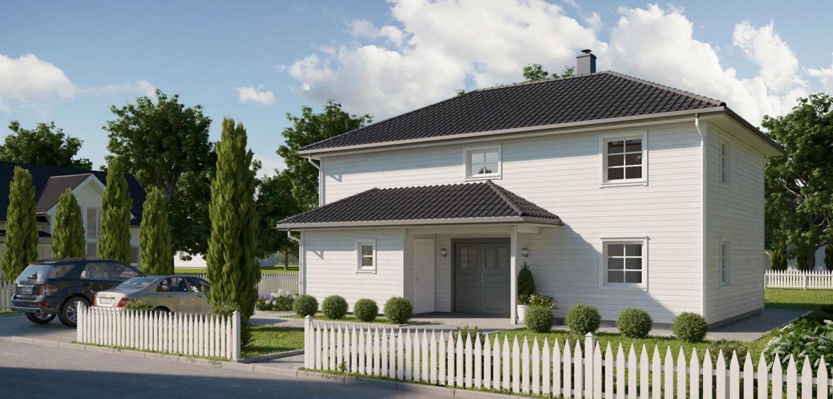 Med Mesterhus Karita har arkitekten lagt vekt på å skape et harmonisk og tidløst fasadeuttrykk. Den midtsentrerte balkongen og et overbygd inngangsparti er med på å gi huset en herskapelig stil. Den romslige hallen med trapp opp til andreetasje og doble dører inn til stua, gir et flott inntrykk når du eller dine gjester kommer inn i huset. Det er også praktisk med god plass der hele familien kommer inn, med en romslig bod, bad og vaskerom lett tilgjengelig.