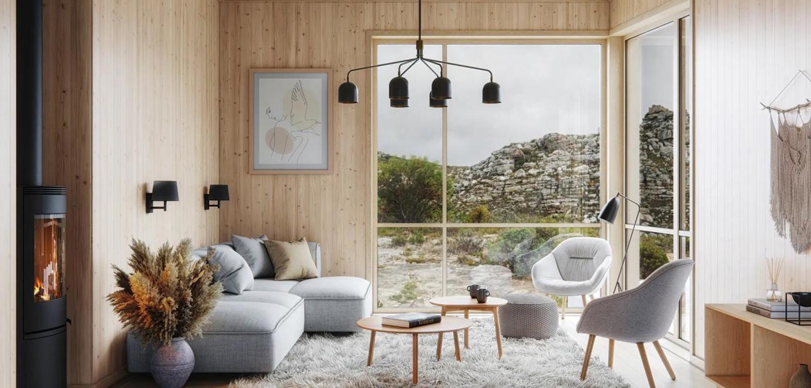 Fra entreen er det skyvedør inn til en åpen stue-/kjøkkenløsning. Rommet er på hele 31,4 m2 og har plass til et kjøkken med rikelig benkeplass, en stor spiseplass og en romslig sofagruppe. De store vinduene gir godt med naturlig lys og gir deg en flott følelse av å være i ett med naturen.