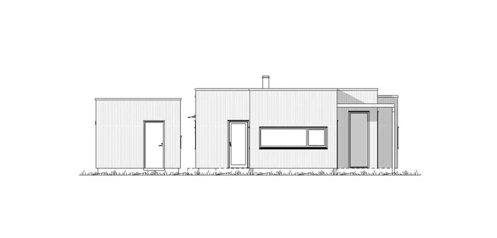 Funkishytta har en svært praktisk og åpen stue- og kjøkkenløsning. Her er det god plass til en kjøkkenøy og ikke minst en romslig spiseplass. Kjøkkenet har også en egen utgang til utendørsområdet i vest og nyter godt av rikelig naturlig lys som strømmer inn over arbeidsbenken i nord.
