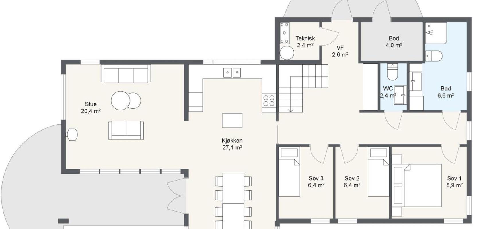Veggli er en romslig og solid familiehytte som sømløst kan tilpasses ulike typer terreng, enten det er i fjellet eller i skogkledde områder. Veggli gir rikelig med plass til trivelige øyeblikk med venner og familie, samtidig som den gir deg nærhet til naturen med store vindusflater og enkel tilgang til utendørsområdene.